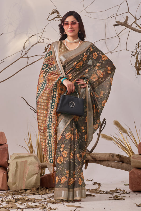 Premium Mocha Silk Embroidered Saree